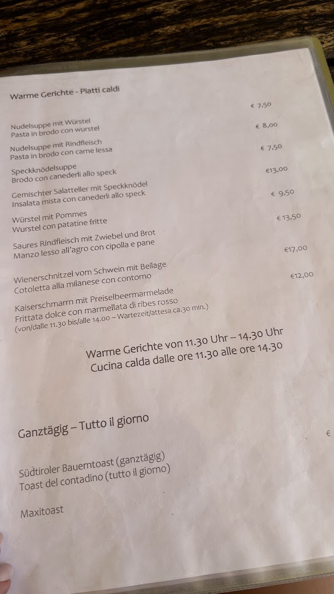 Guests rave about the friendly service and affordable prices, making it a popular stop for both tourists and locals. The menu is diverse, catering to every palate, with standout items including the delicious Kaiserschmarrn and a delightful meat and cheese tray that pairs perfectly with locally sourced wines like Vernatsch.